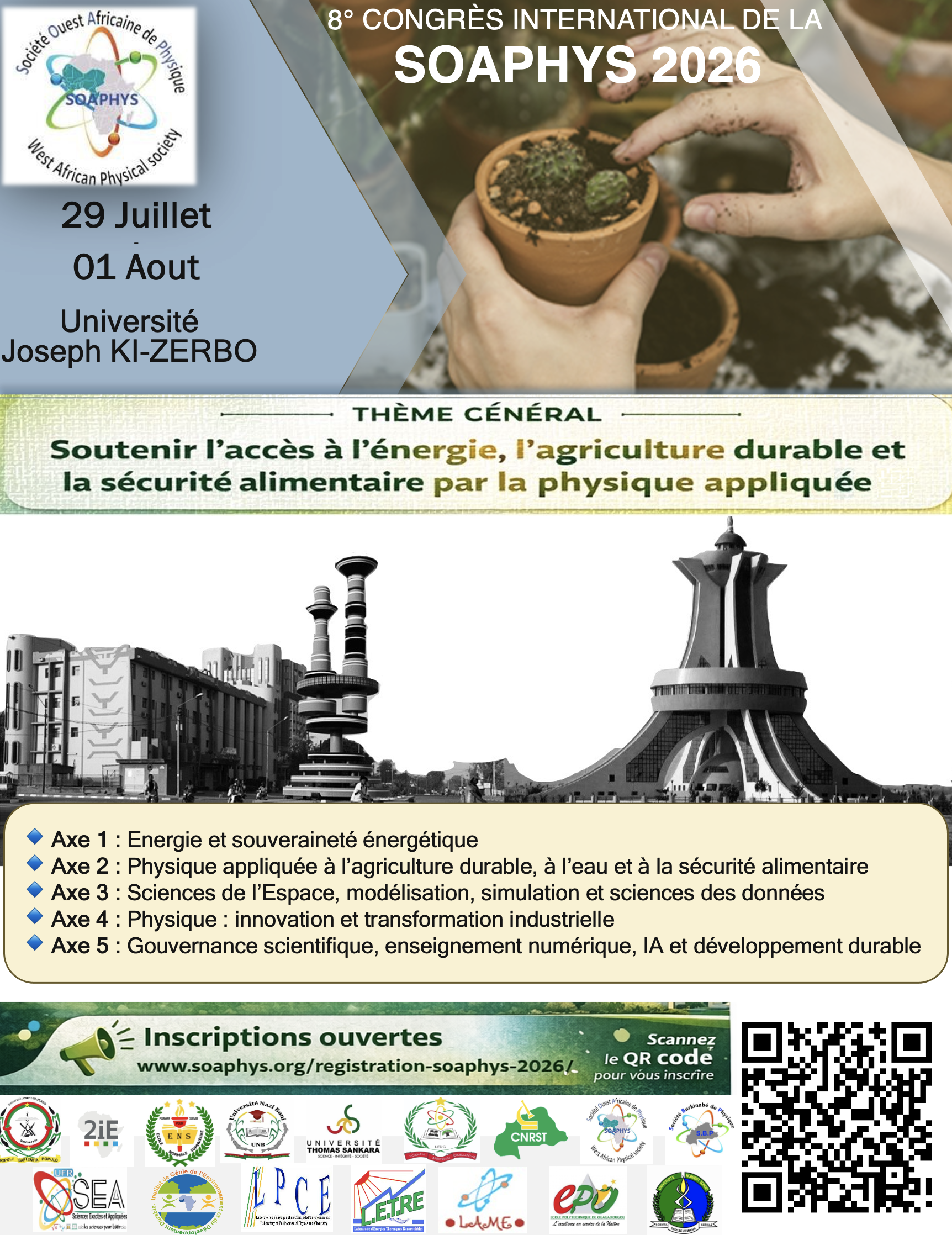 - Contribuer à la structuration et au renforcement de la physique en Afrique de l’Ouest au soutien de l’accès à l’énergie, à l’agriculture durable et à la sécurité alimentaire, en passant d’une logique de juxtaposition scientifique à une dynamique de coopération régionale effective